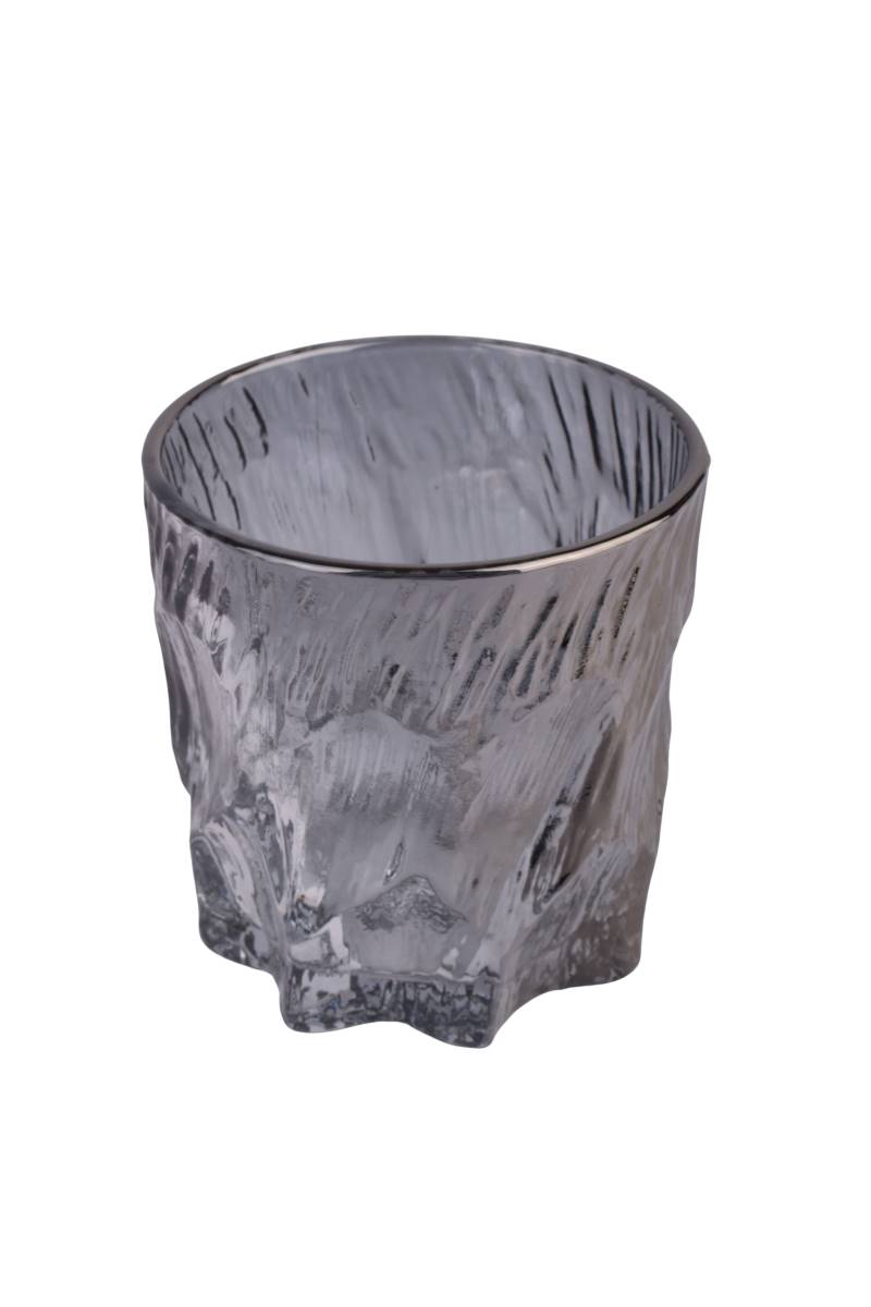 Vasos de vidrio textura gris 265 ml, set de 6 unidades ideales para bebidas frías y uso diario. Diseño moderno. Cómpralos en Ferniplast.com