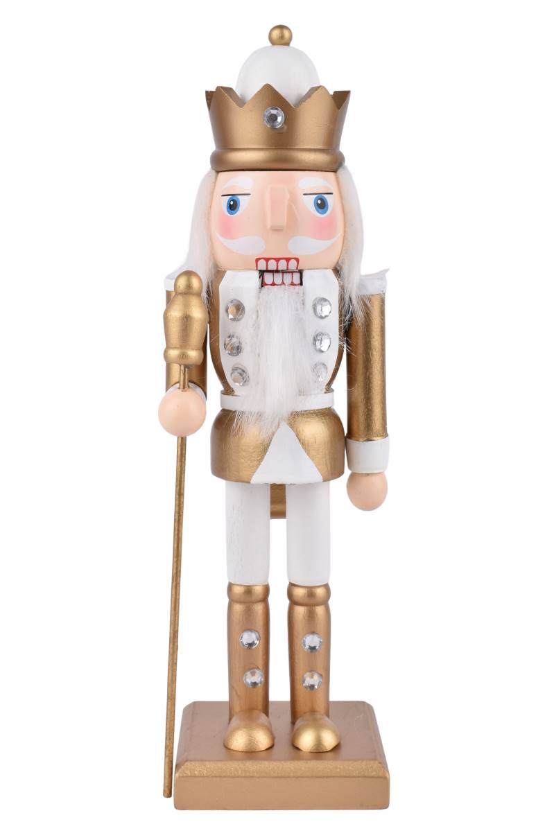 Cascanueces navideño dorado de 30 cm, ideal para decorar mesas, recibidores y ambientes con estilo clásico. Elegí el tuyo. Cómpralo en Ferniplast.com.