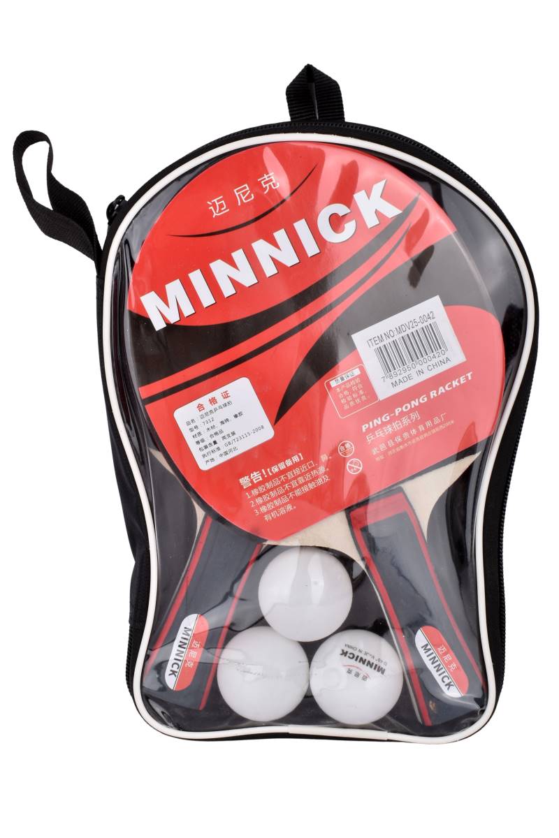 Completo Set Ping Pong MINNICK. Incluye 2 paletas, 3 pelotas y estuche para llevar. Diversión garantizada para todos. ¡Cómpralo en Ferniplast.com!