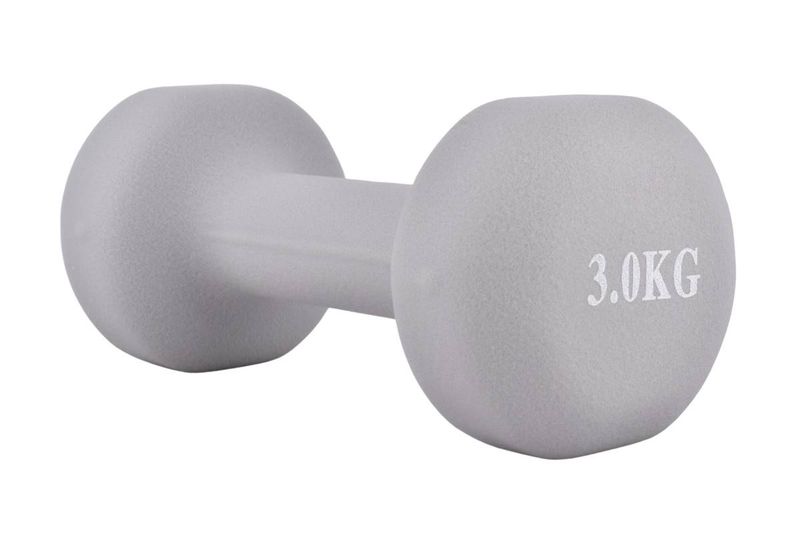 Mancuerna de 3 kg con recubrimiento de neoprene antideslizante. Entrená fuerza y tonificá en casa. ¡Cómprala en Ferniplast.com!