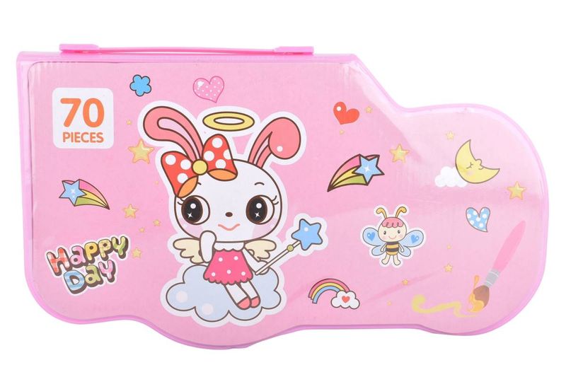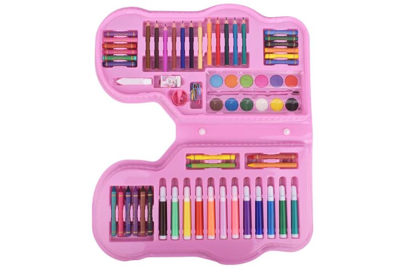 Despertá la creatividad con este completo set de arte de 70 piezas. Ideal para niños y actividades escolares o recreativas. Ideal para uso escolar, tareas creativas, dibujos, pintura o manualidades. Perfecto para llevar al jardín, escuela o viajes.