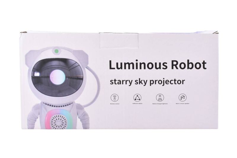 Proyector astronauta galaxia de 22cm con parlante, luces LED multicolor y rotación. Ideal para ambientar tu espacio. Cómpralo en Ferniplast.com