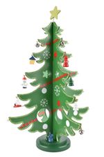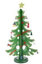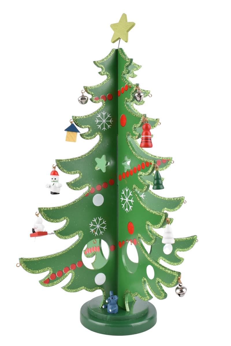 Árbol navideño de madera de 34 cm con mini adornos incluidos, ideal para mesas y escritorios. Armá tu decoración navideña. Cómpralo en Ferniplast.com.