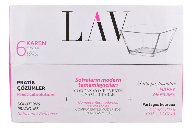 Set de 6 bowls de vidrio Karen de 300 ml, ideales para postres, snacks o entradas. Diseño moderno y versátil. Cómpralo en Ferniplast.com