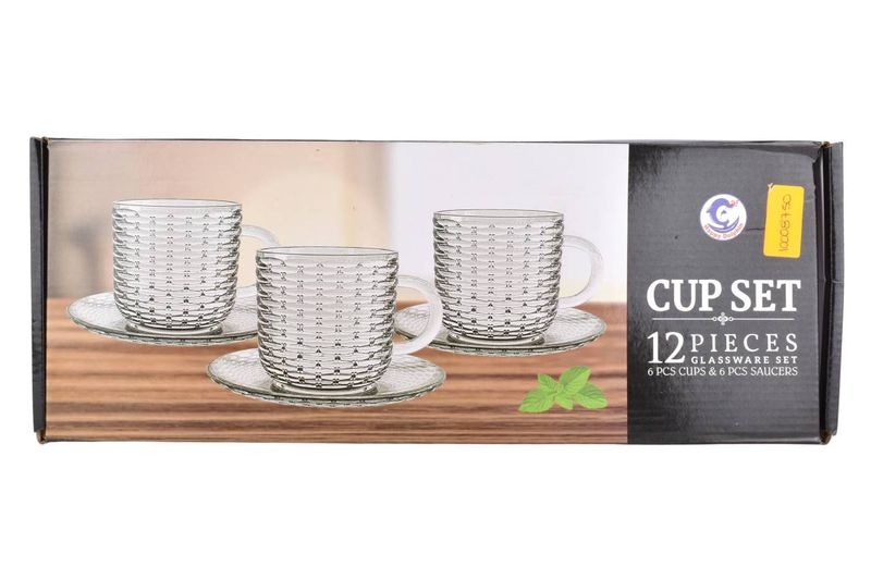 Set de tazas de té con plato de vidrio 240 ml, ideal para servir infusiones con estilo. Incluye 12 piezas. Cómpralo en Ferniplast.com