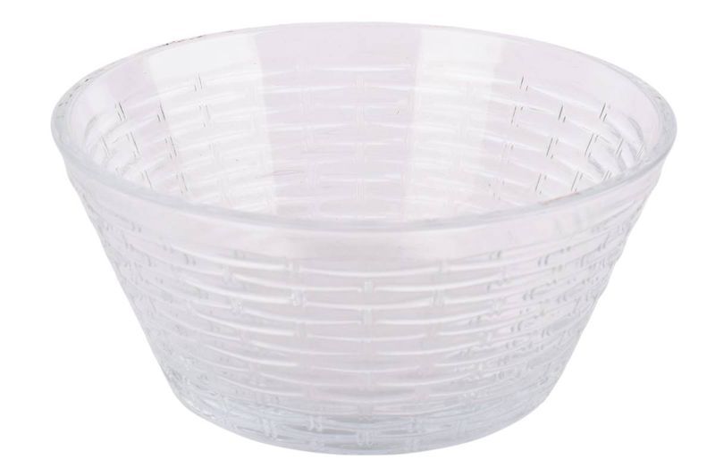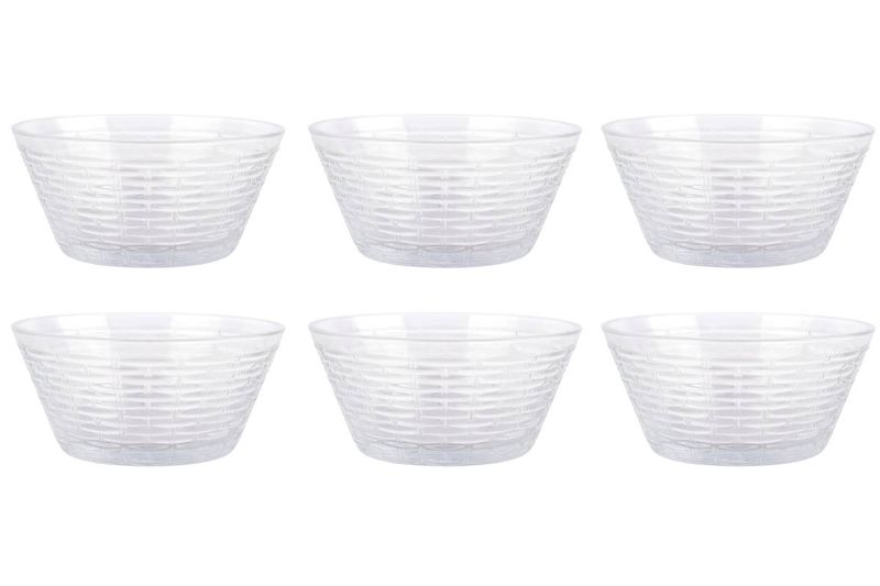 Bowls de vidrio diseño rattan 270 ml en set de 6 unidades, ideales para postres y snacks. Sumá estilo a tu mesa. Cómpralo en Ferniplast.com