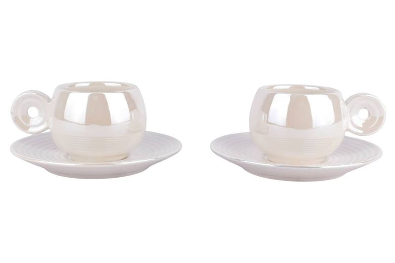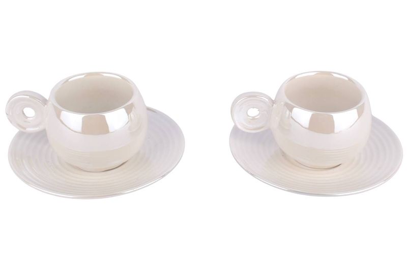 Set de tazas con platos de cerámica esmaltada, diseño moderno y elegante ideal para servir café o té con estilo. Ideal para servir café, té o infusiones en encuentros diarios o momentos especiales, aportando una presentación moderna a la mesa.