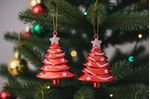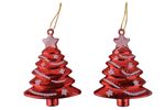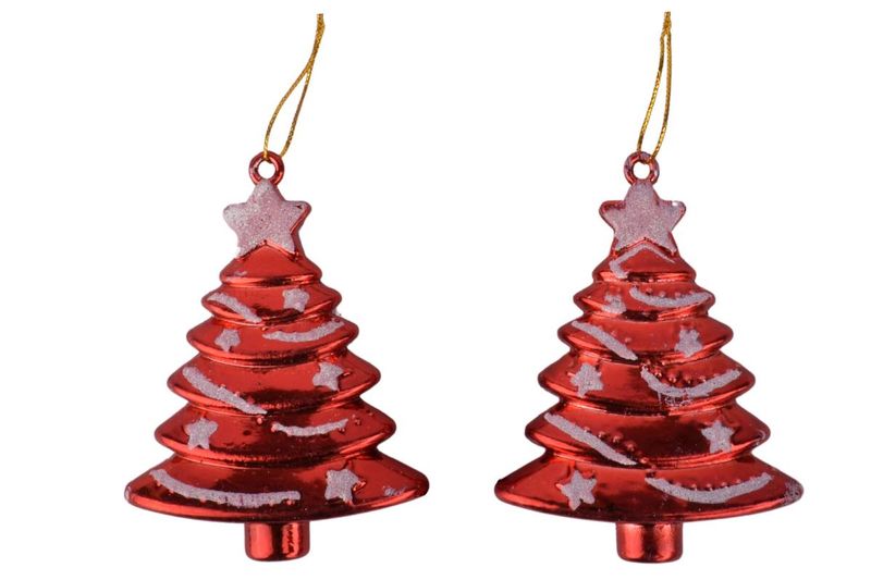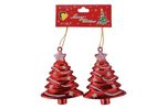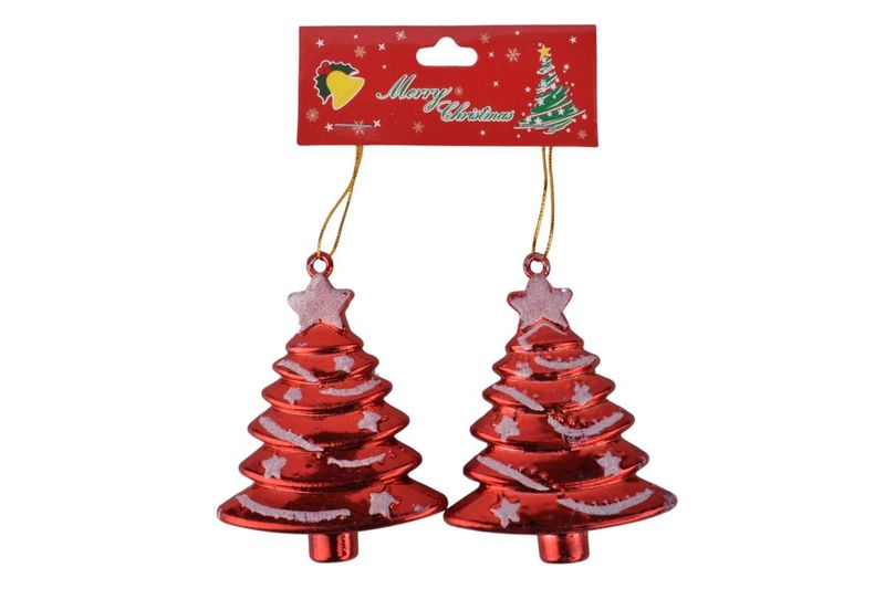 Set de 2 adornos navideños en forma de pino rojo con brillo. Clásicos, resistentes y decorativos. ¡Cómpralos en Ferniplast.com!