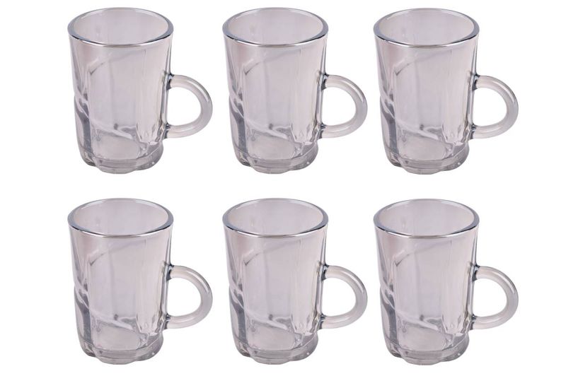Set de jarros de vidrio con rayas grises 110 ml x6, ideal para café o té. Diseño clásico y práctico. Cómpralo en Ferniplast.com.