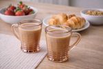 Set de jarros de vidrio de 100 ml con diseño cónico y detalle dorado, ideal para servir café, té o infusiones en porciones individuales. Uso doméstico o gastronómico para café corto, té, infusiones o bebidas calientes en presentaciones pequeñas.