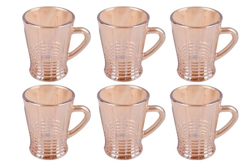 Set de jarros de vidrio cónico con detalle dorado 100 ml x6, ideal para café o té. Diseño elegante y funcional. Cómpralo en Ferniplast.com
