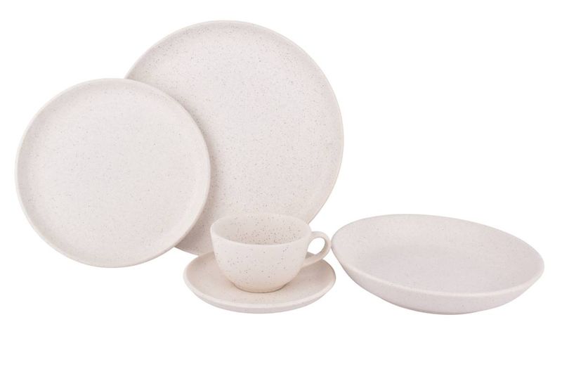 Set completo de vajilla en cerámica color baunilha, ideal para vestir la mesa diaria con un estilo cálido, neutro y moderno. Pensado para servir comidas diarias y ocasiones especiales, ofreciendo una presentación armónica y práctica para el hogar.
