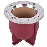Disfruta de la tradición del mate con un toque moderno y místico. Este mate combina un cuerpo ergonómico con una virola de acero inoxidable grabada con motivos de sol, luna y estrellas.