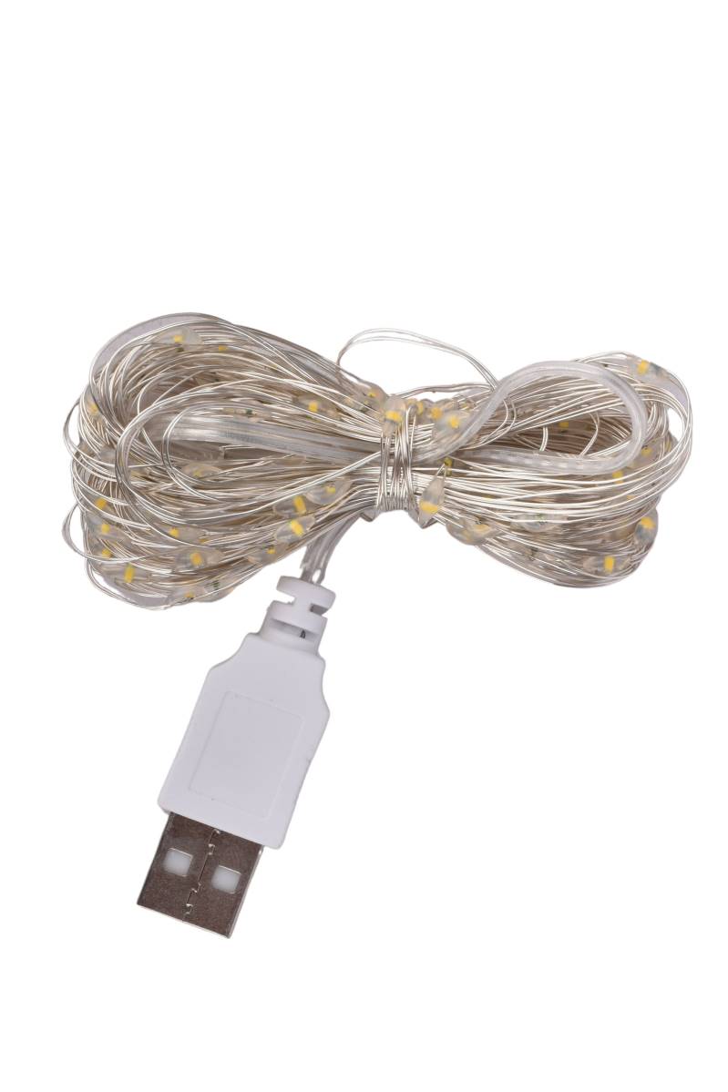 Guirnalda LED 10 m con alambre flexible y conexión USB. Ideal para decorar con luz cálida y moderna. ¡Cómprala en Ferniplast.com!