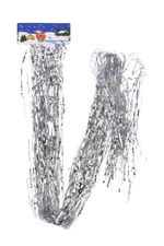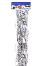 Cinta decorativa tipo lluvia navideña en color plateado. Ideal para dar brillo y movimiento a tu árbol o ambientes festivos. Perfecta para añadir un toque luminoso y elegante a la decoración navideña, tanto en interiores como en vidrieras, fiestas o eventos.