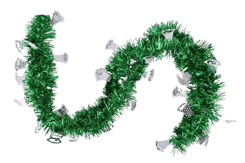 Boa decorativa navideña metalizada con campanas plateadas. Aporta brillo y movimiento a tu decoración festiva. Ideal para decorar árboles de Navidad, barandas, marcos de puertas, centros de mesa o escaparates, aportando un toque alegre y festivo.