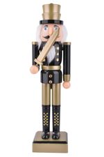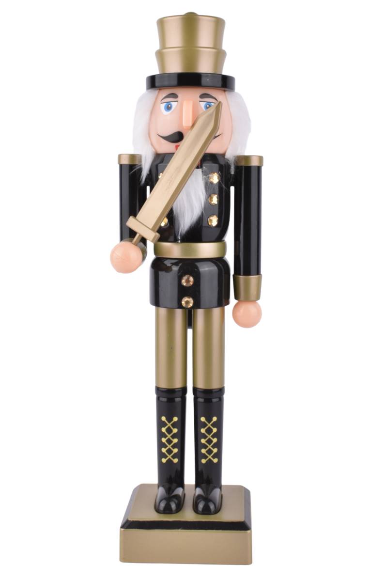 Cascanueces decorativos de 37 cm con diseño clásico y detalles brillantes, ideales para realzar cualquier ambiente navideño. Perfectos para decorar el árbol, repisas o entradas. También se usan como centro de mesa o en vidrieras navideñas.