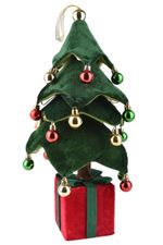 Árbol navideño de felpa con luz LED y base de regalo, ideal para decorar mesas y rincones. Diseño compacto y festivo. Cómpralo en Ferniplast.com.