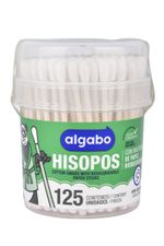 Hisopos Algabo 125 unidades: algodón seguro y bastón de papel biodegradable para higiene y cuidado personal. ¡Cómpralos en Ferniplast.com!