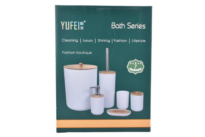 Set de Baño Yufei de Lujo (6 piezas) colores surtidos, sujeto a disponibilidad de stock al momento de realizar la compra. Completo, resistente al agua y no tóxico. ¡Cómpralo en Ferniplast.com y organiza tu baño con estilo!