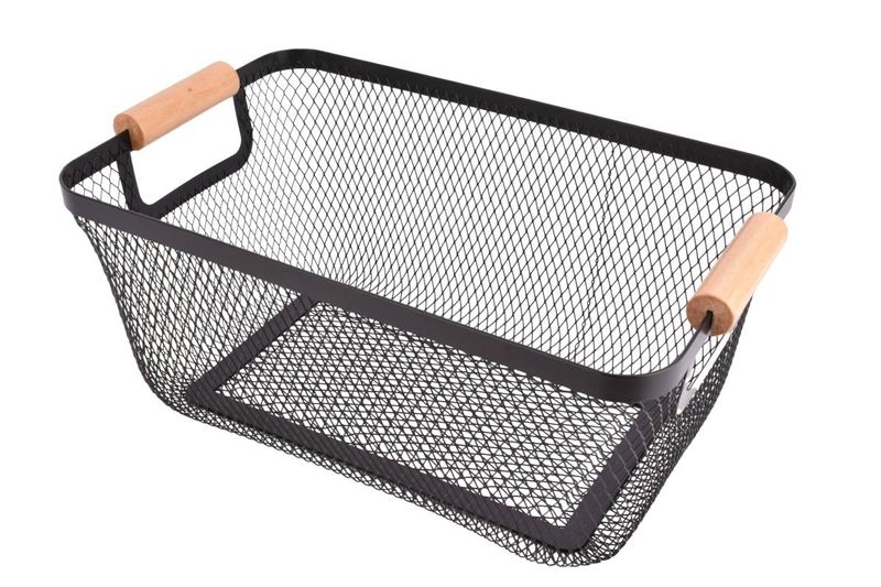 Organiza tu hogar con este canasto de alambre de 29x20x13cm con asas de madera. Diseño industrial elegante y funcional. Cómpralo en Ferniplast.com.