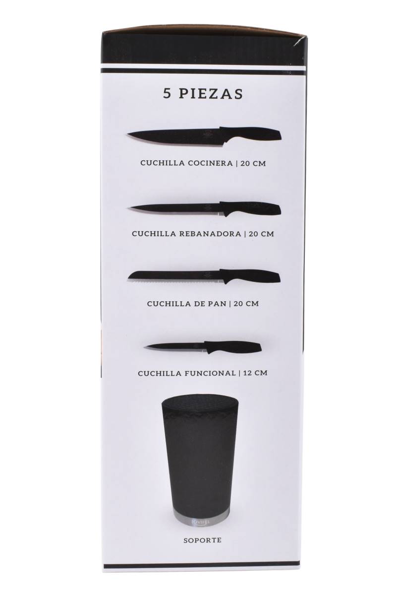 Descubre el set de cuchillas Jovifel de 5 piezas con soporte. Acero inoxidable para cortes precisos. ¡Cómpralo en Ferniplast.com!
