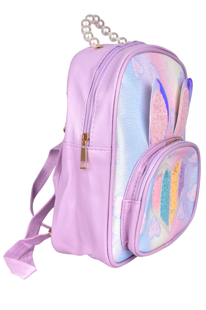 Mochila infantil con orejas glitter y manija de perlas, ideal para jardín y paseos. Diseño brillante y práctico. Cómprala en Ferniplast.com.