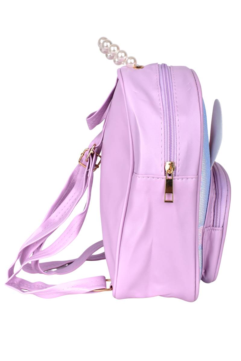 Mochila infantil adorable con orejas glitter y manija de perlas. Ideal para llevar juguetes y accesorios con estilo. Perfecta para uso diario escolar, paseos o actividades recreativas. Su tamaño compacto permite transportar juguetes, colaciones o pequeños accesorios.