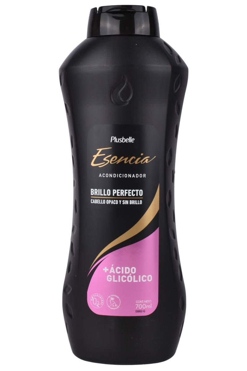 Acondicionador Plusbelle Esencia Brillo Perfecto 700 ml con ácido glicólico, ideal para cabello opaco y sin brillo. Cómpralo en Ferniplast.com