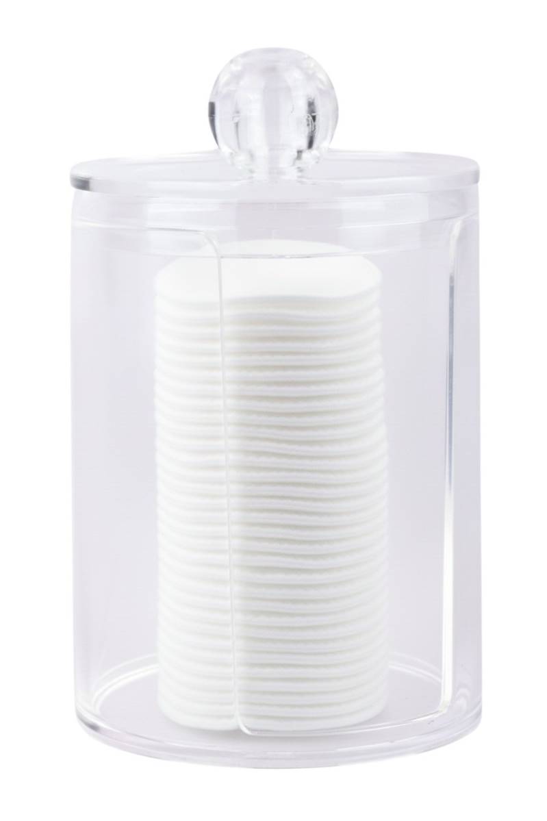 Organizador acrílico transparente para discos de algodón. Mantiene tu maquillaje ordenado e higiénico en el baño o tocador. Cómpralo en Ferniplast.com.