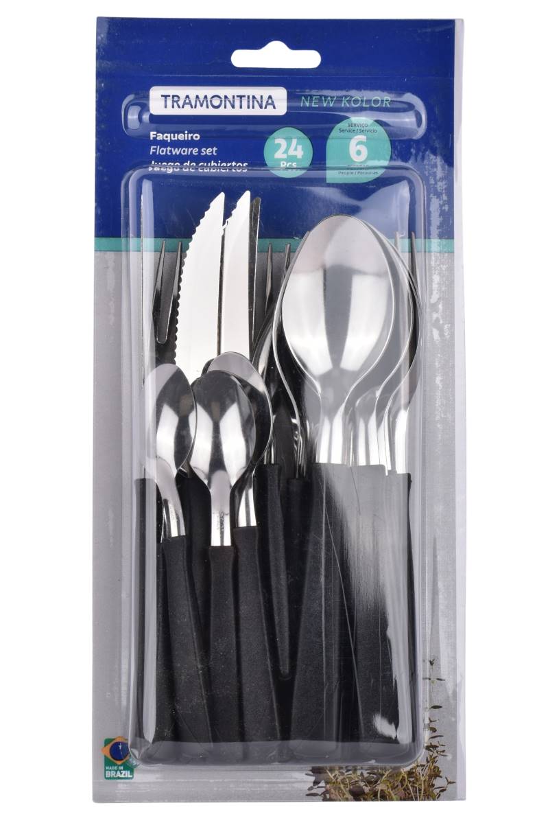Dale estilo y practicidad a tu mesa con el juego de cubiertos Tramontina New Kolor. Su diseño moderno con mangos en color negro aporta elegancia a cualquier ocasión, mientras que el acero inoxidable de alta calidad asegura resistencia y durabilidad. Ideal para el uso diario o para recibir invitados, es un set completo y funcional que combina comodidad, calidad y fácil mantenimiento.