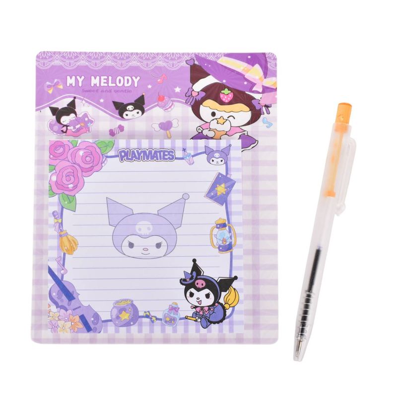 Anotador My Melody en formato compacto, ideal para notas rápidas, recordatorios o mensajes diarios. Incluye bolígrafo para que puedas escribir en cualquier momento. Su diseño ilustrado lo hace práctico y decorativo, perfecto para llevar en la mochila, cartera o tener en el escritorio.