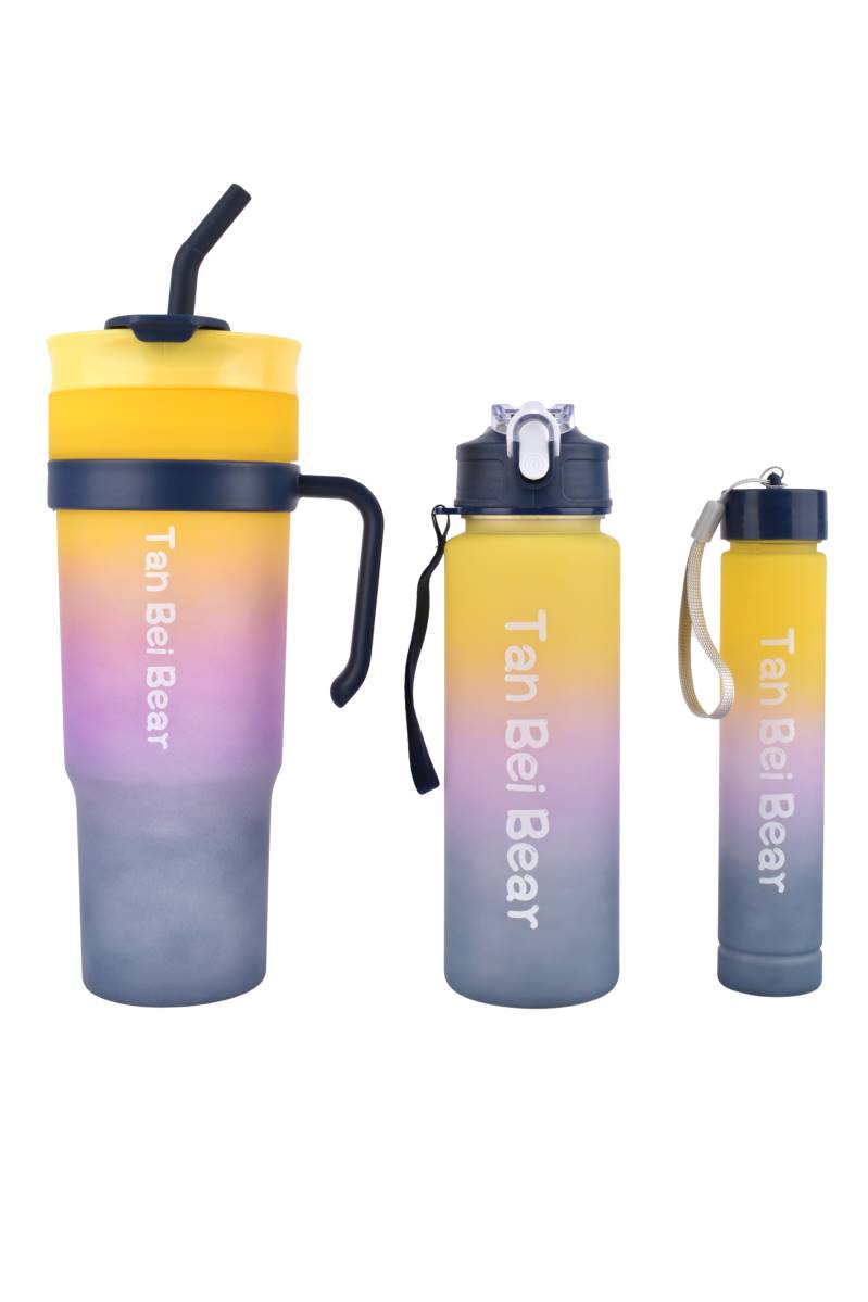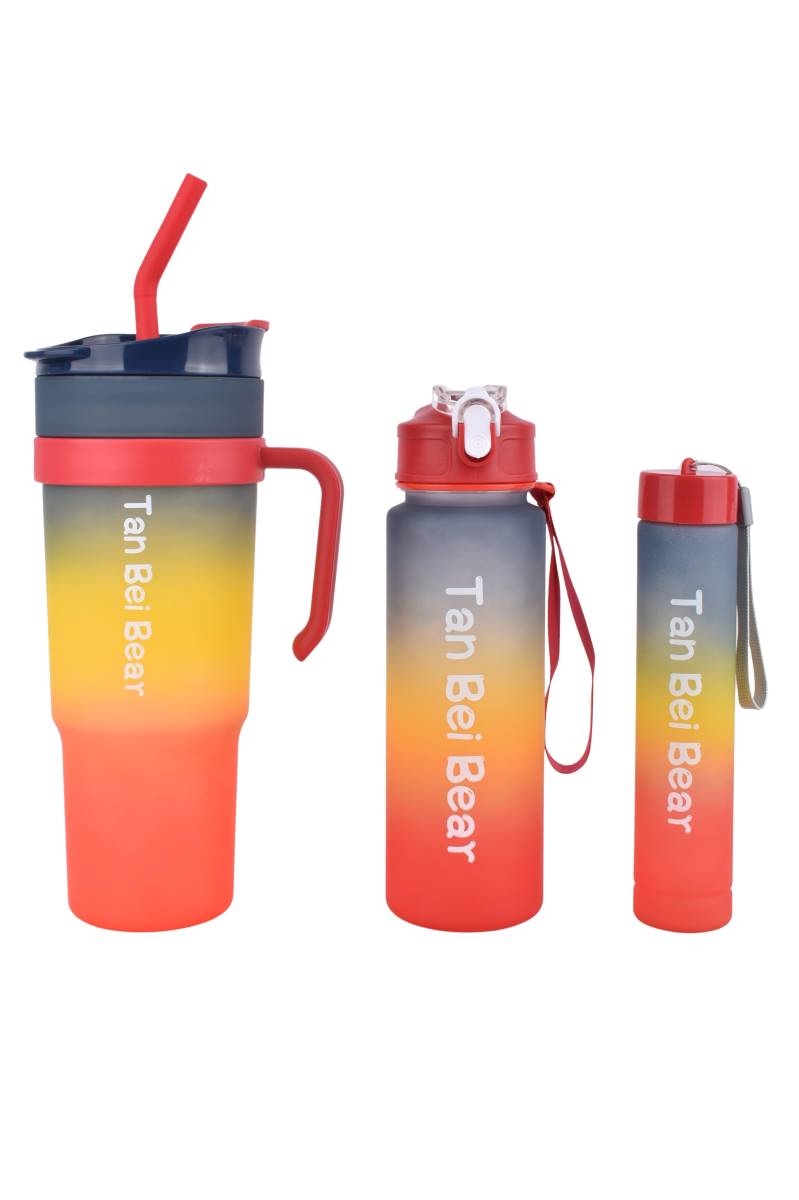 Set de 3 botellas plásticas tricolor, ideales para hidratarte en casa, el trabajo o el gimnasio. Prácticas, resistentes y con diseños modernos. Perfectas para llevar agua, jugos o bebidas frías durante el día, entrenamientos o salidas al aire libre. Cada botella se adapta a diferentes rutinas y necesidades.