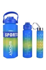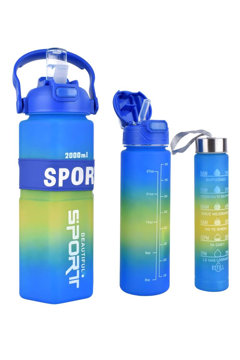 Set de botellas deportivas 2000+800+280 ml, resistentes y prácticas para hidratarte todo el día. Diseño degradado y tapones seguros. Cómpralo en Ferniplast.com.