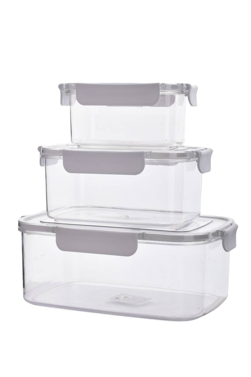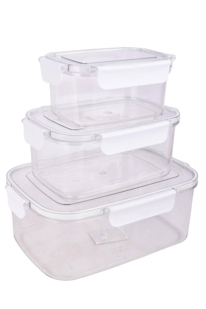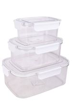 Set de tres recipientes herméticos transparentes ideales para conservar alimentos, ordenar la heladera y llevar comidas con total seguridad. Perfectos para guardar frutas, verduras, sobras, y colaciones, manteniendo la frescura por más tiempo.