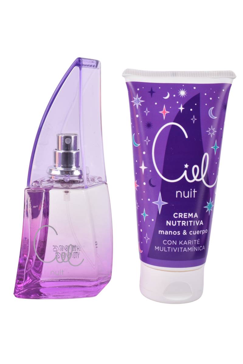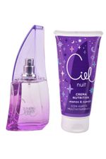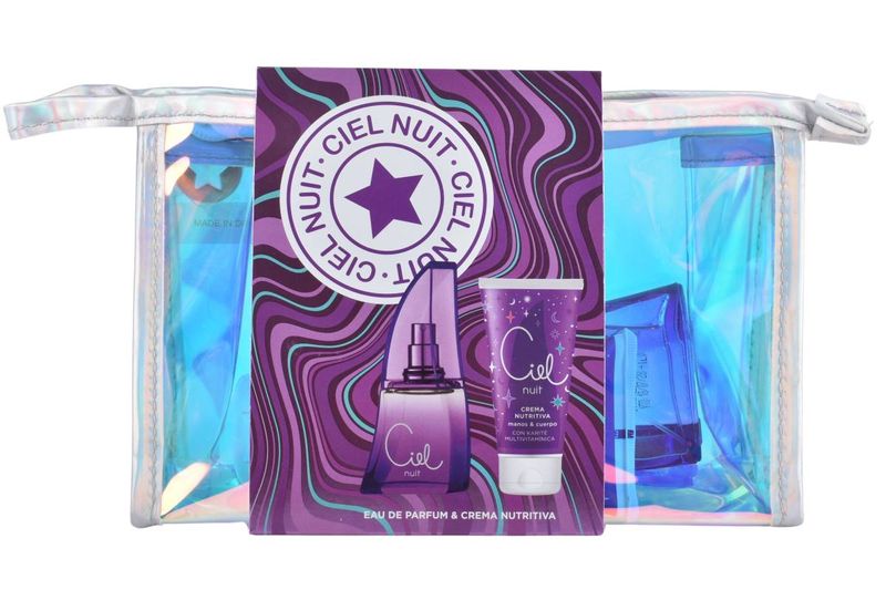 Set de perfume Ciel Nuit (EDP + Crema) en un neceser holográfico. Aroma mágico y piel nutrida con karité. ¡Cómpralo en Ferniplast.com!