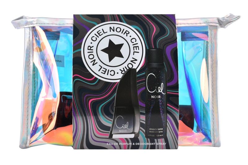Set de Perfume Ciel Noir (EDP + Desodorante) y neceser holográfico. Fragancia misteriosa y duradera para la noche. ¡Cómpralo en Ferniplast.com!
