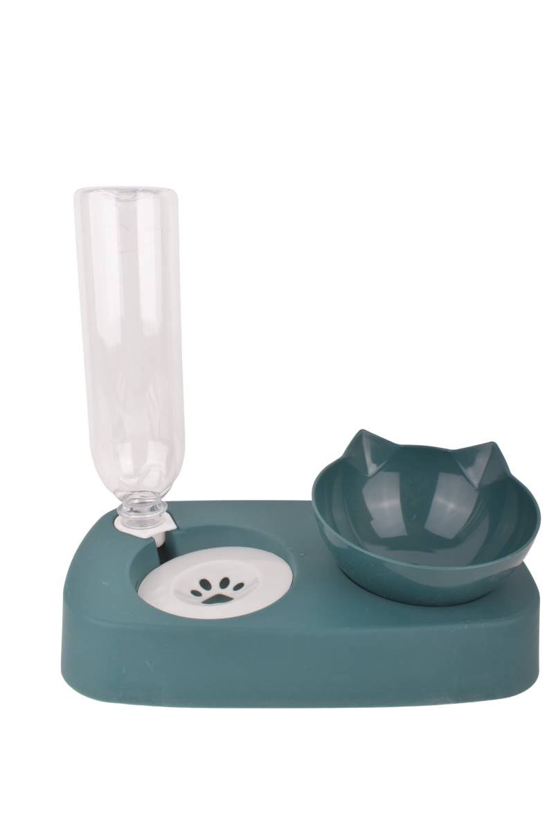 Comedero doble para mascotas con bowl y dispensador integrado, ideal para combinar alimento seco y agua de forma práctica.