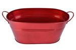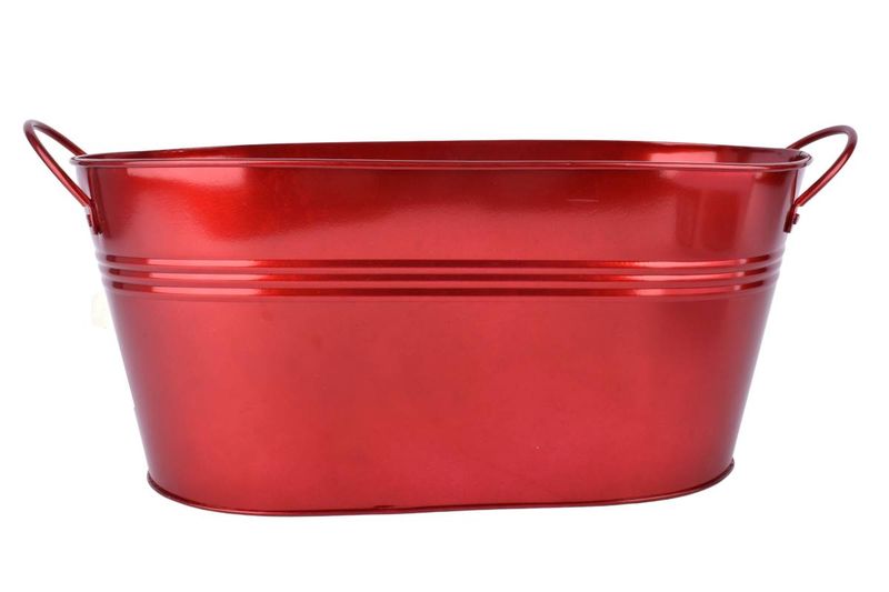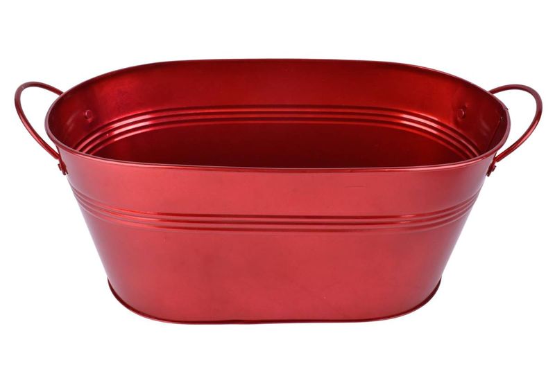 Balde oval de metal color rojo, ideal para enfriar champagne, vinos o bebidas y presentar en reuniones, eventos o celebraciones. Pensado para mantener botellas frías con hielo, es ideal para champagne, vino, espumantes o bebidas en reuniones sociales, bares y eventos.