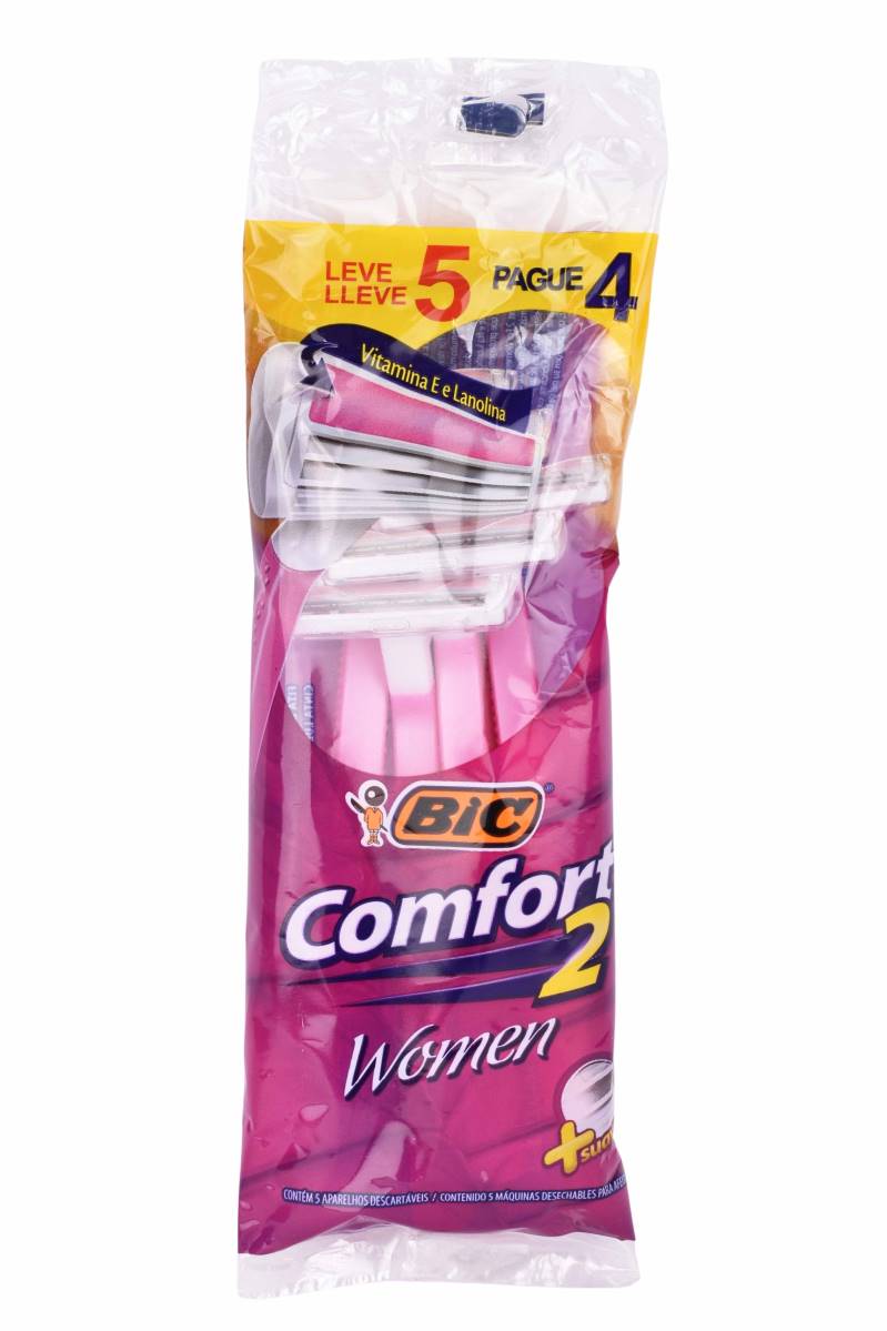 Máquina de afeitar BIC Comfort 2 Women pack x5 con doble hoja y banda lubricante con vitamina E. Suave y práctica. Cómpralo en Ferniplast.com