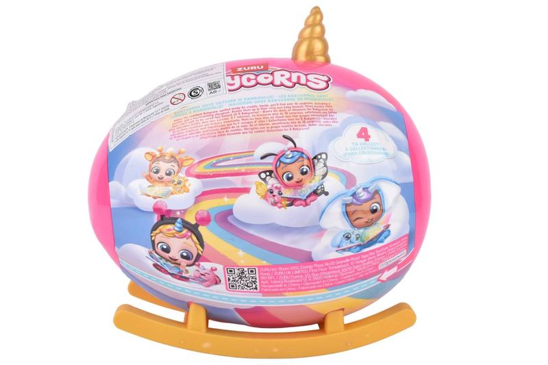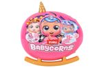 Muñeca Babycorns con más de 15 sorpresas para descubrir. Incluye accesorios, slime y una adorable figura con temática de unicornio. Los niños pueden abrir el huevo, descubrir sorpresas, jugar con la muñeca Babycorn y coleccionar diferentes personajes, fomentando la imaginación y el juego creativo.