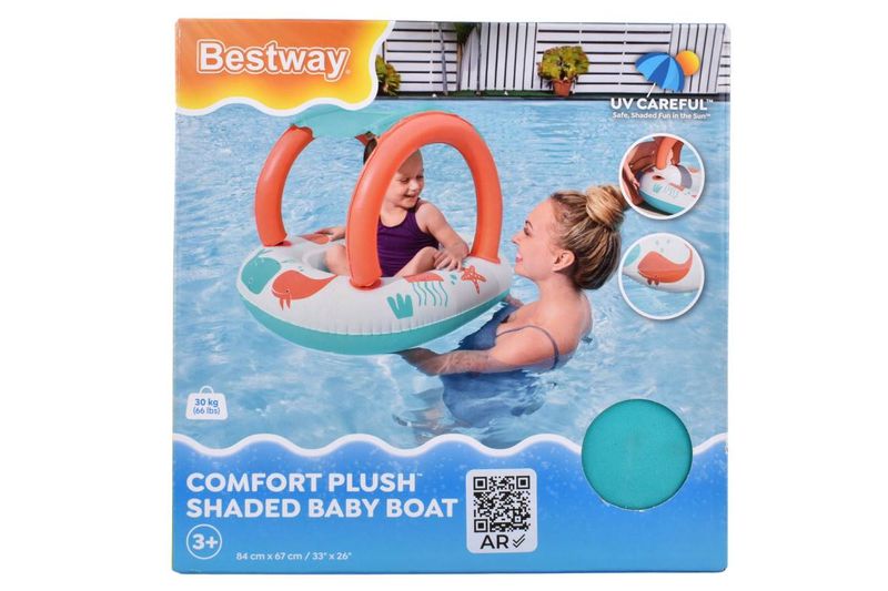 Bote inflable acolchado Bestway para bebé con toldo UV y asiento cómodo. Seguro y resistente. ¡Cómpralo en Ferniplast.com!