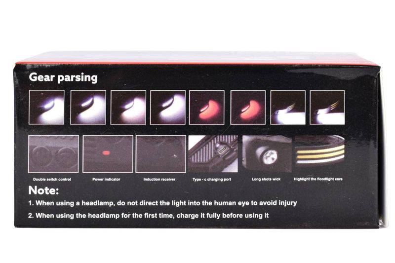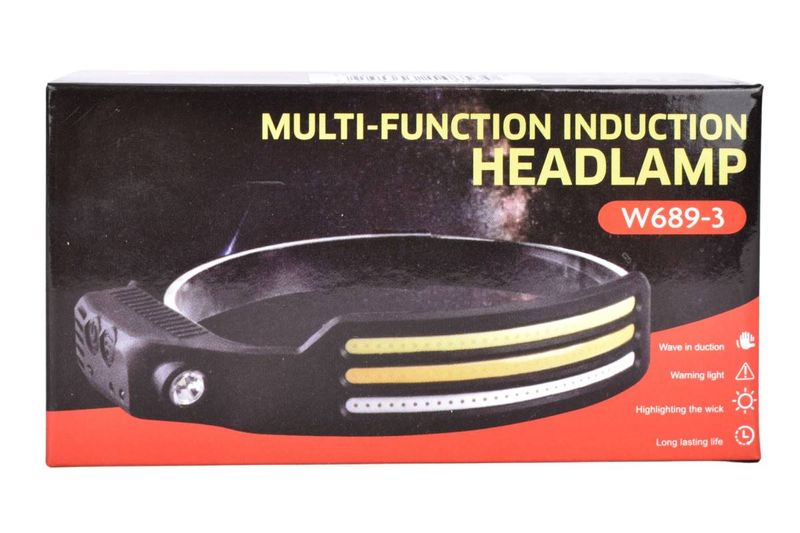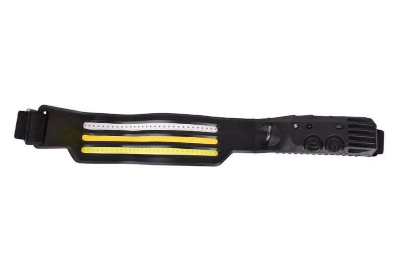 Linterna vincha multifunción de 33 cm con LED COB, sensor de movimiento y carga USB-C. Ideal para trabajos o actividades al aire libre. Cómpralo acá en Ferniplast.com