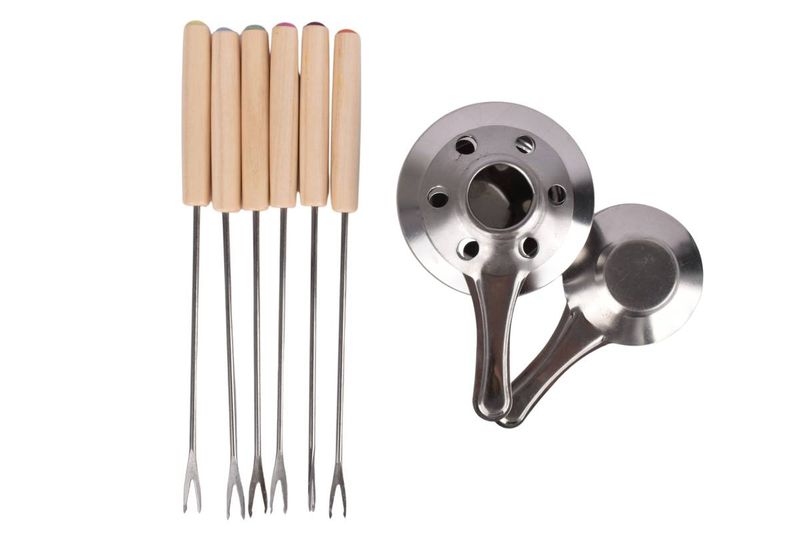 Set de fondue completo para hasta seis personas, ideal para compartir chocolates, quesos o salsas en reuniones y ocasiones especiales. Perfecto para preparar y servir fondues de queso, chocolate o carne, manteniendo la temperatura ideal durante toda la experiencia.