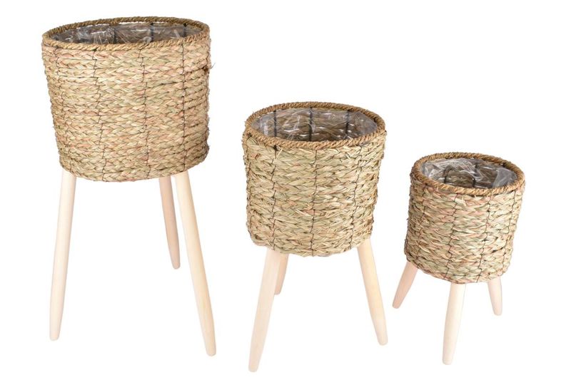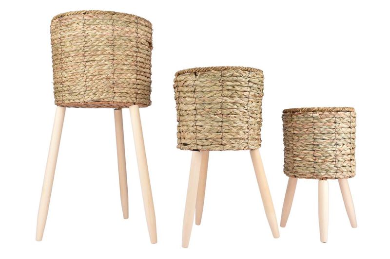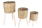 Set de maceteros con pie de yute en 3 tamaños. Diseño natural y moderno ideal para decorar interiores con plantas. Cómpralo en Ferniplast.com.
