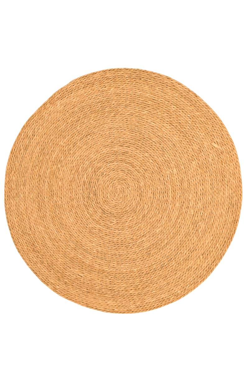 Alfombra circular de yute natural, resistente y decorativa, ideal para sumar textura y calidez a cualquier ambiente. Perfecta para usar en livings, dormitorios, recibidores o espacios de lectura, aportando calidez y un toque artesanal.