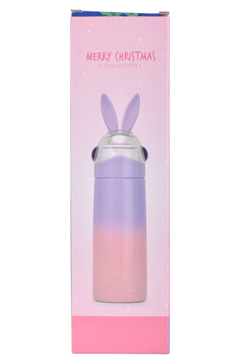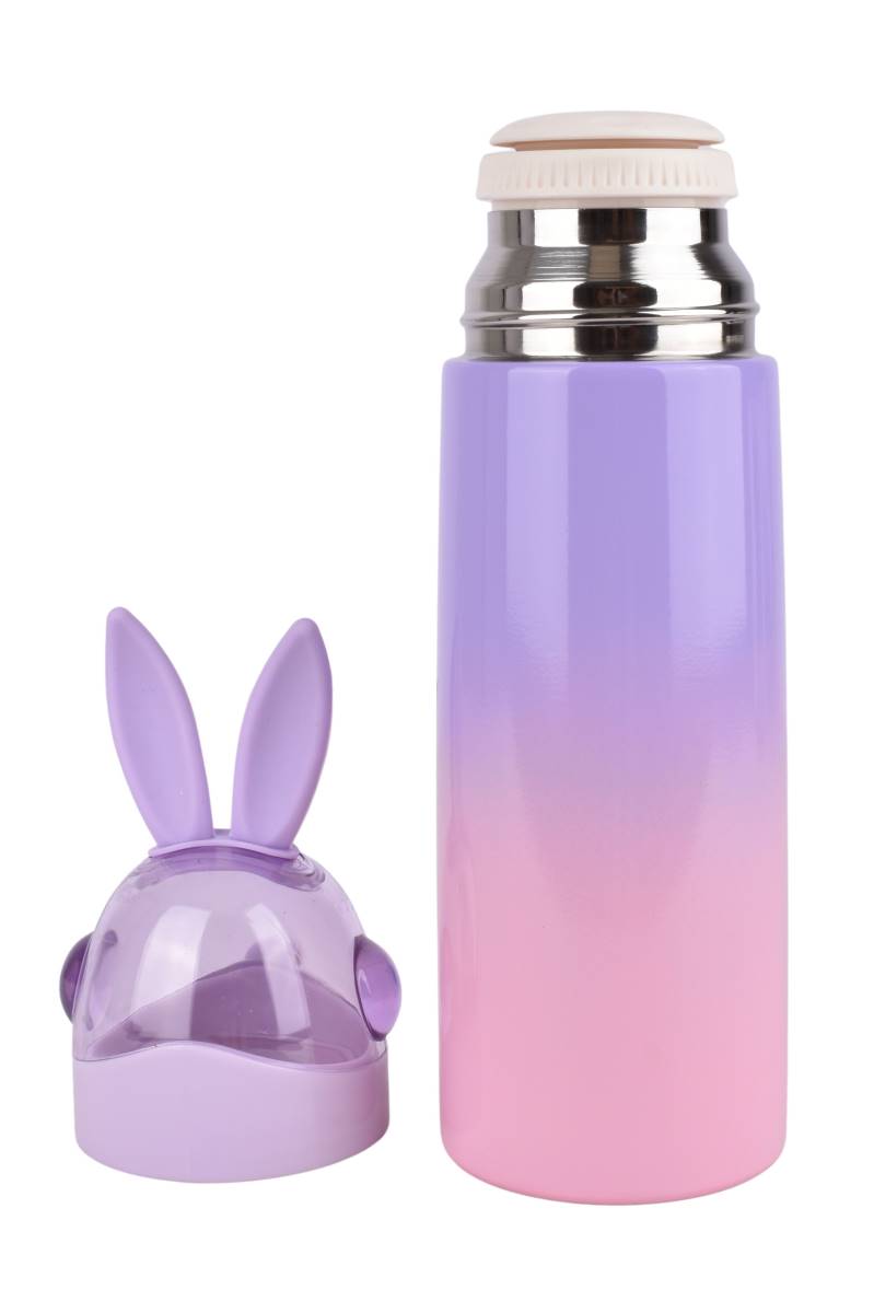 Termo infantil de acero inoxidable con divertido diseño con orejas, ideal para mantener bebidas calientes o frías por horas. Perfecto para la escuela, paseos y viajes. Ideal para llevar al colegio, actividades al aire libre o viajes. Mantiene la temperatura de jugos, agua, leche, té o infusiones por horas.