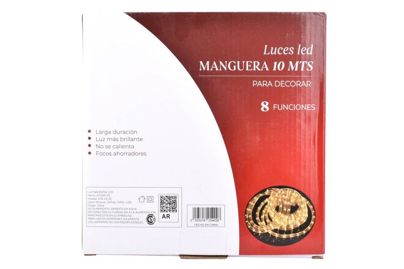 Manguera LED cálida de 10 m con 8 funciones. Luz brillante, segura y decorativa para interiores. Ideal para ambientar tu hogar. Cómprala en Ferniplast.com.