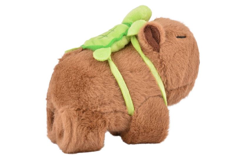 Peluche con diseño de capibara, suave al tacto y de tamaño compacto, ideal para regalar o decorar.