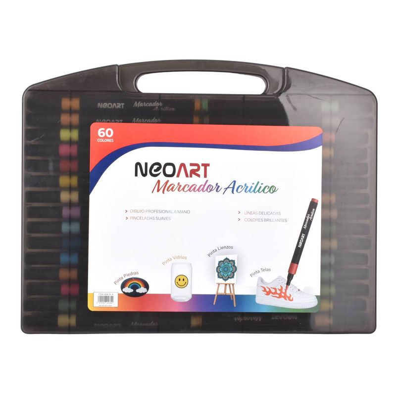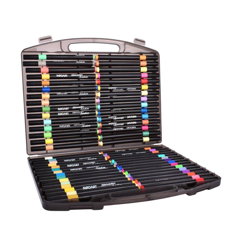 Valija marcadores acrílicos Neo Art (60 colores) con punta pincel. Pintura permanente para arte profesional en lienzo, tela y más. Cómpralo en Ferniplast.com.